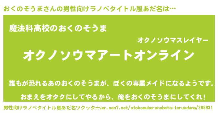 | 女子向けラノベタイトル風あだ名 | 『おくのそうま姫と円卓の騎士』 |