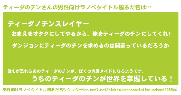 | ヒーロー風カッコイイあだ名 | 『暗黒騎士ティ』『ネオティーダノチン』 |