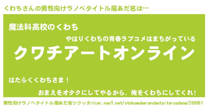 | 胡散臭い通販商品みたいなあだ名 | 『億万長者になれる水晶球…その名も「くわち」』 |