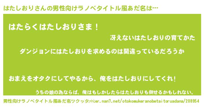 | 胡散臭い通販商品みたいなあだ名 | 『伝統あるサプリメント…その名も「はたしおり」』 |