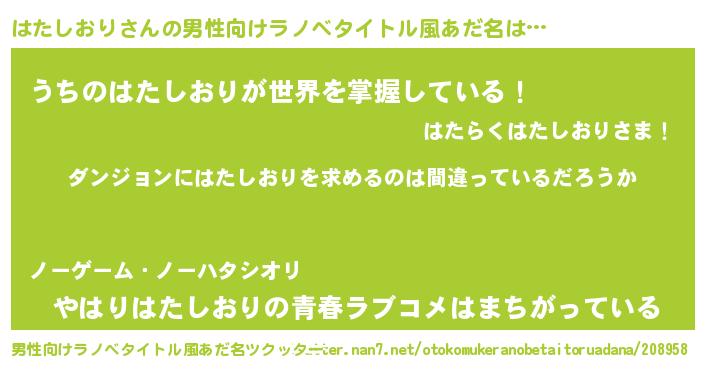 | ヒーロー風カッコイイあだ名 | 『魔戒騎士ハタ』『友情の使者はたしおり』 |