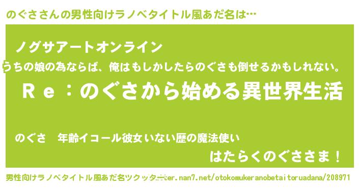 | ヒーロー風カッコイイあだ名 | 『究極戦士ノグサ』『スーパーノグサ』 |