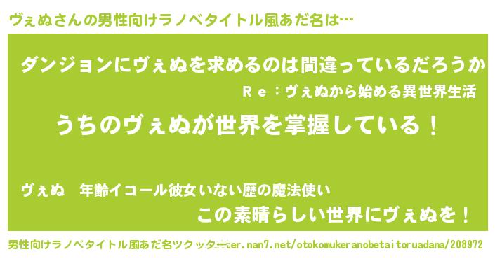 | 意味不明あだ名 | 『とにかく怪しいヴぇぬ』『自称ヴぇぬ』 |