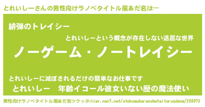 | 女子向けラノベタイトル風あだ名 | 『とれいしー恋絵巻』 |