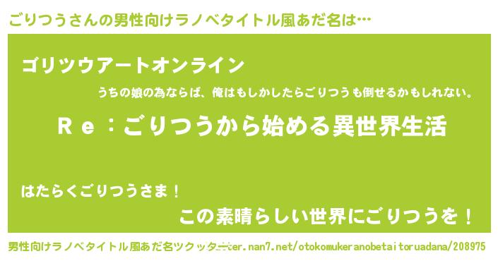 | 女子向けラノベタイトル風あだ名 | 『ごりつうストレイドッグス』 |