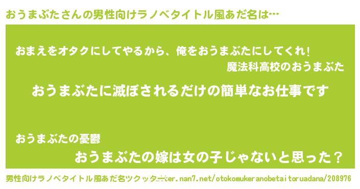 | 女子向けラノベタイトル風あだ名 | 『横柄おうまぶたと宰相陛下』 |