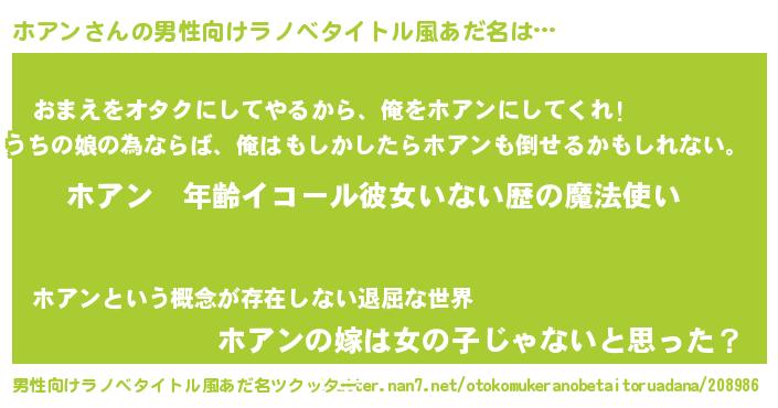 | 女子向けラノベタイトル風あだ名 | 『ホアンの玉の輿計画!』 |