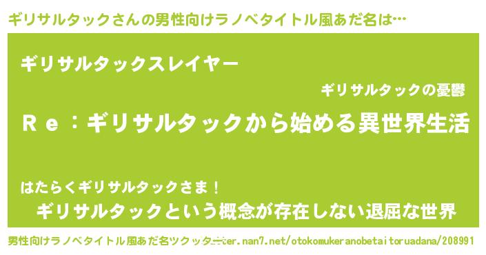 | 女子向けラノベタイトル風あだ名 | 『闇のギリサルタック』 |