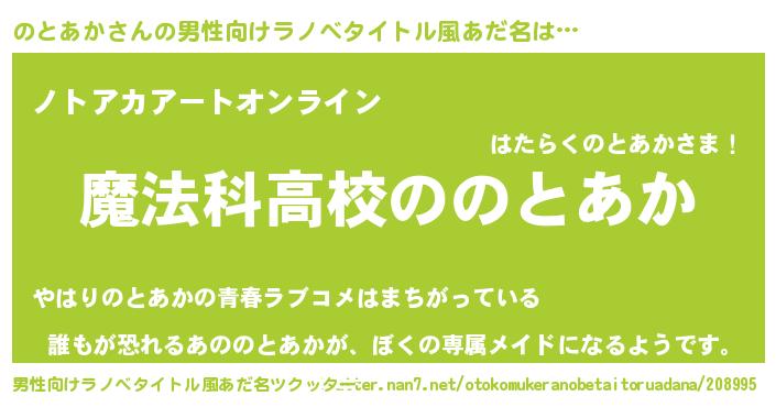 | 女子向けラノベタイトル風あだ名 | 『のとあかなんてお断りですっ。』 |