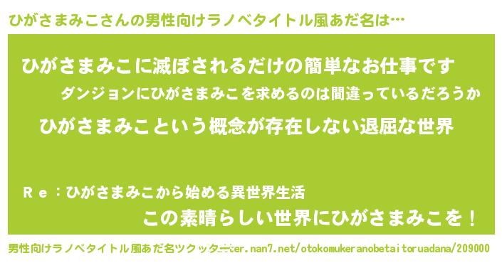 | 意味不明あだ名 | 『永久保存ひがさまみこ』 |