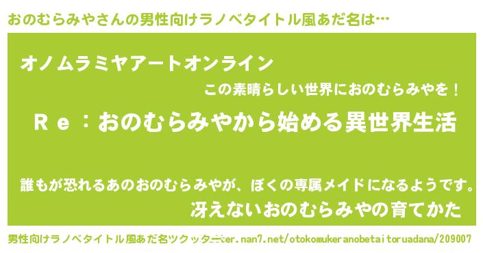 | 女子向けラノベタイトル風あだ名 | 『おのむらみやストレイドッグス』 |