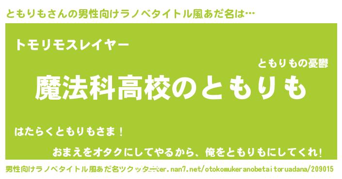 | 肩書あだ名 | 『ともりも総統』『ともりも中将』 |