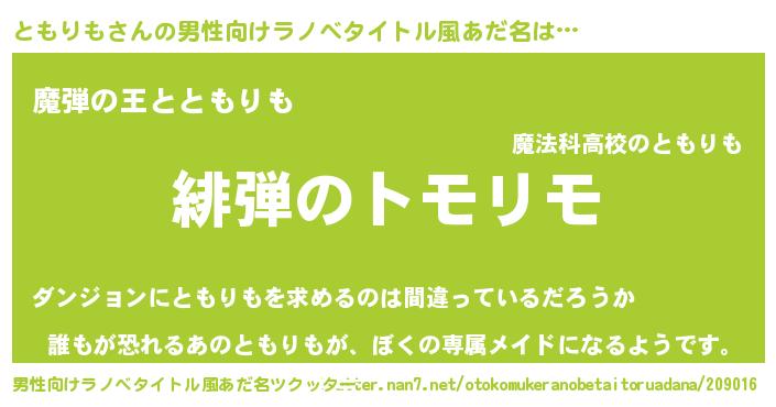 | ヒーロー風カッコイイあだ名 | 『仮面トモダー』『ネオトモリモ』 |