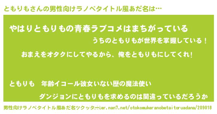 | 女子向けラノベタイトル風あだ名 | 『ともりも夫妻のなれそめ』 |