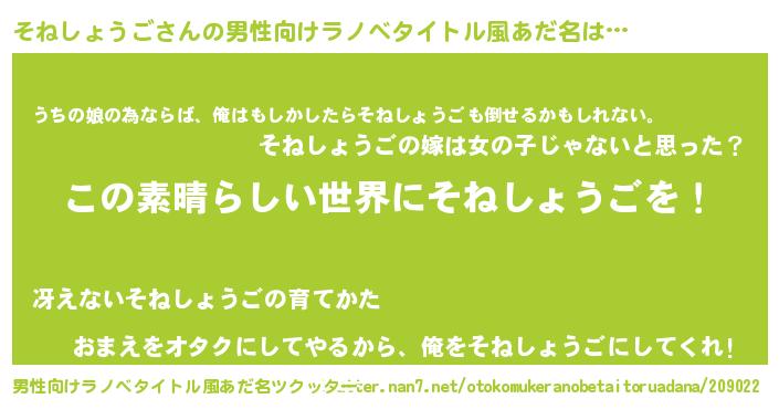 | 意味不明あだ名 | 『住所不定無職そねしょうご(89歳)』 |
