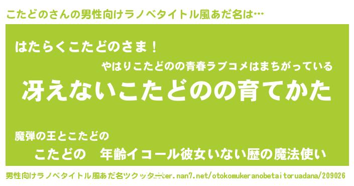 | 女子向けラノベタイトル風あだ名 | 『男装こたどのの憂鬱な任務』 |