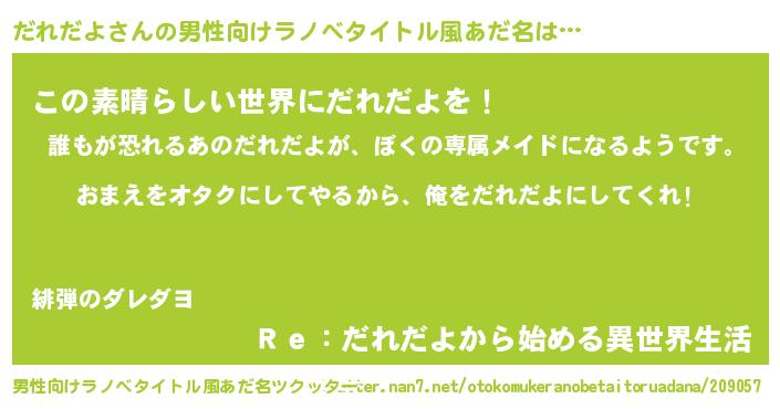 | 女子向けラノベタイトル風あだ名 | 『だれだよ夫妻のなれそめ』 |