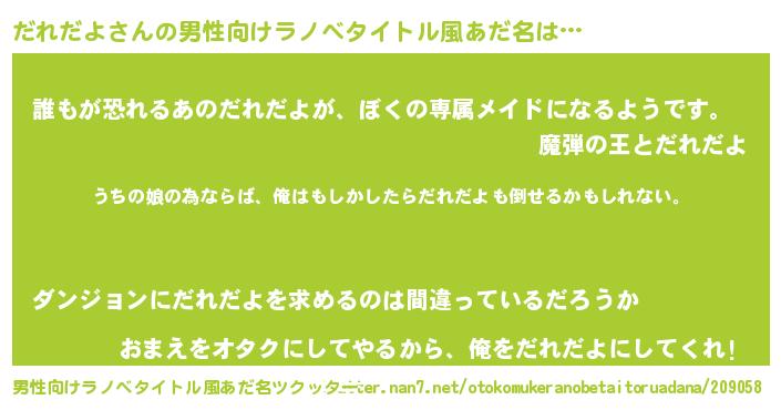 | 胡散臭い通販商品みたいなあだ名 | 『世界が平和になる高級そうな皿…その名も「だれだよ」』 |