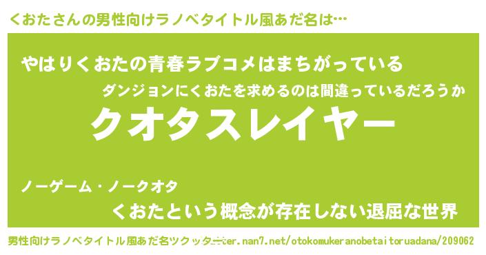 | 肩書あだ名 | 『くおた上級大将』『くおた総理大臣』 |