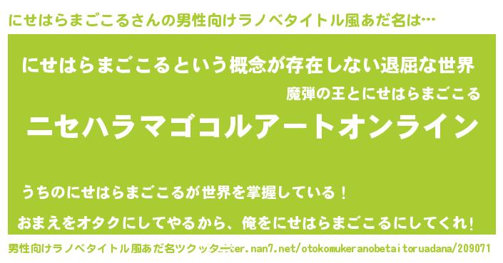 | 女子向けラノベタイトル風あだ名 | 『誰かこのにせはらまごこるを説明してください! ~契約から始まるウェディング~』 |
