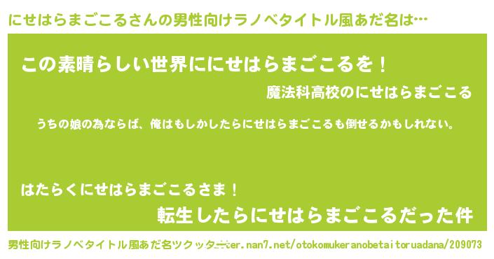 | ファンタジー風あだ名 | 『エターナルニセハラマゴコルー』 |