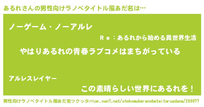 | 女子向けラノベタイトル風あだ名 | 『あるれ伯爵の花嫁』『あるれ恋絵巻』 |