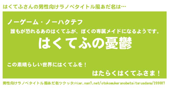 | 胡散臭い通販商品みたいなあだ名 | 『必ず成功する霊験あらたかなお札…その名も「はくてふ」』 |