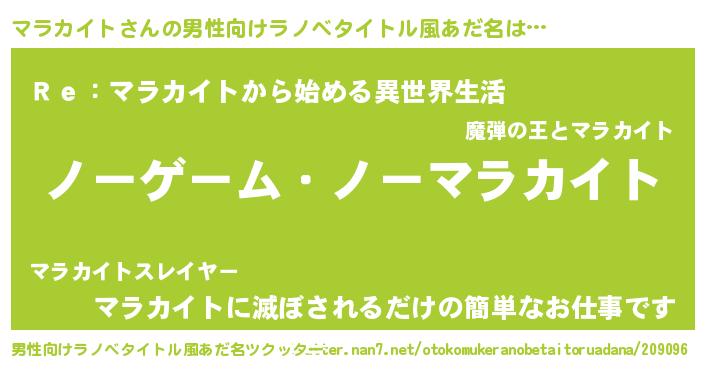 | 女子向けラノベタイトル風あだ名 | 『死神マラカイトの再婚』 |