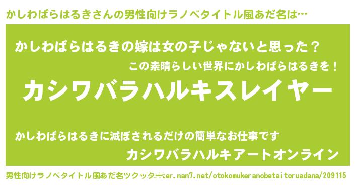 | 胡散臭い通販商品みたいなあだ名 | 『信頼と実績のペンダント…その名も「かしわばらはるき」』 |