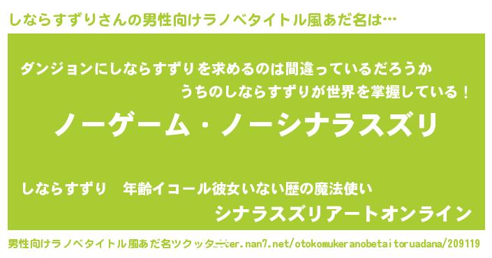 | 女子向けラノベタイトル風あだ名 | 『死神しならすずりの再婚』 |