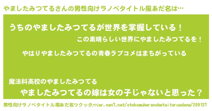 | 女子向けラノベタイトル風あだ名 | 『やましたみつてる伯爵の花嫁』 |