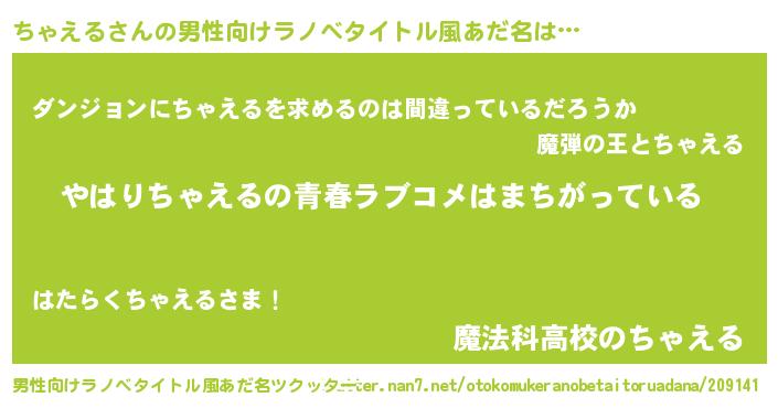 | ファンタジー風あだ名 | 『エターナルチャエルー』『ゼチャトゥ』 |