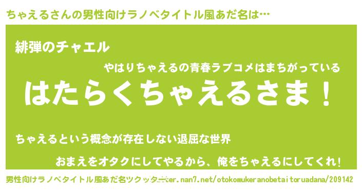 | ヒーロー風カッコイイあだ名 | 『友情の使者ちゃえる』『ネオチャエル』 |