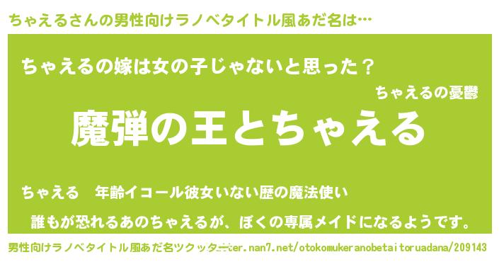 | 意味不明あだ名 | 『住所不定無職ちゃえる(39歳)』 |