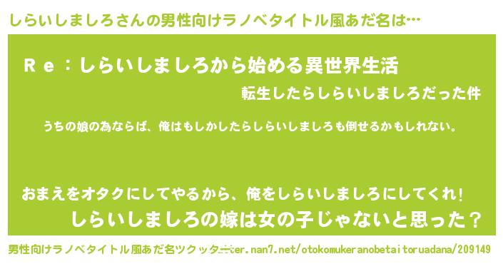 | ファンタジー風あだ名 | 『エターナルシライシマシロー』 |