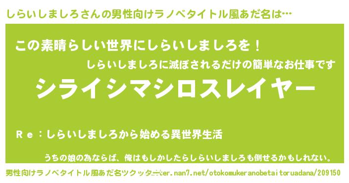 | 料理風あだ名 | 『しらいしましろごはん』 |