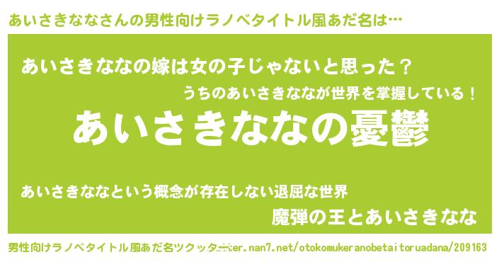 | 女子向けラノベタイトル風あだ名 | 『(仮)あいさきななのやんごとなき事情』 |