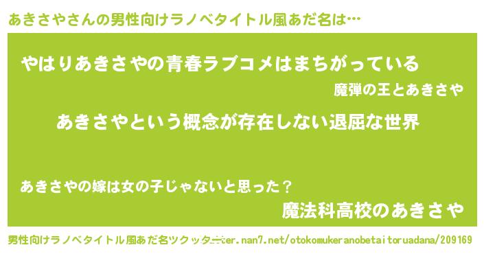 | 胡散臭い通販商品みたいなあだ名 | 『来世でも幸せになれる健康食品…その名も「あきさや」』 |