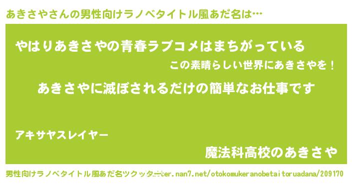 | 胡散臭い通販商品みたいなあだ名 | 『運命の人と巡り会える高級そうな絵画…その名も「あきさや」』 |