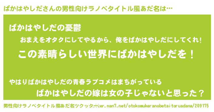 | 意味不明あだ名 | 『住所不定無職ばかはやしだ(4歳)』 |