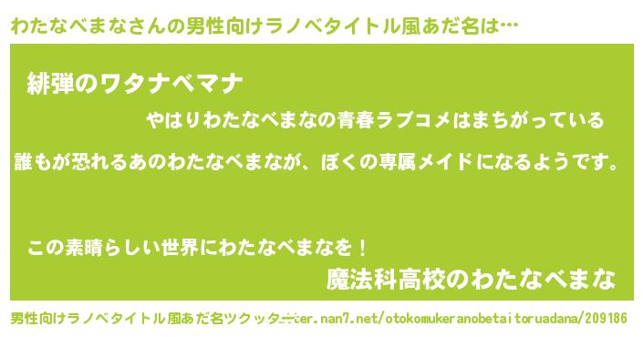| 伝説のあだ名 | 『古より伝わる吟遊詩人わたなべまな』 |