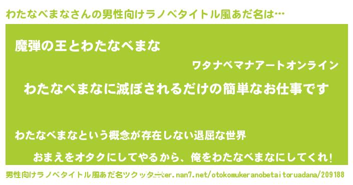 | 女子向けラノベタイトル風あだ名 | 『横柄わたなべまなと宰相陛下』 |