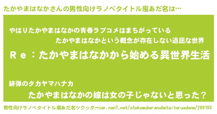 | 女子向けラノベタイトル風あだ名 | 『闇のたかやまはなか』 |