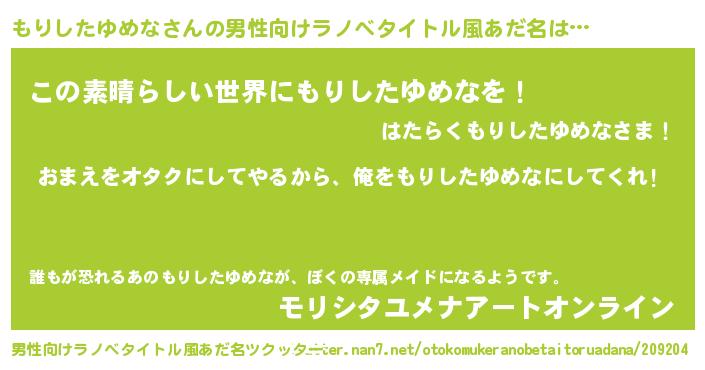 | 女子向けラノベタイトル風あだ名 | 『もりしたゆめな恋絵巻』 |