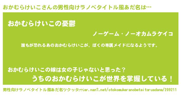 | 意味不明あだ名 | 『永久保存おかむらけいこ』 |