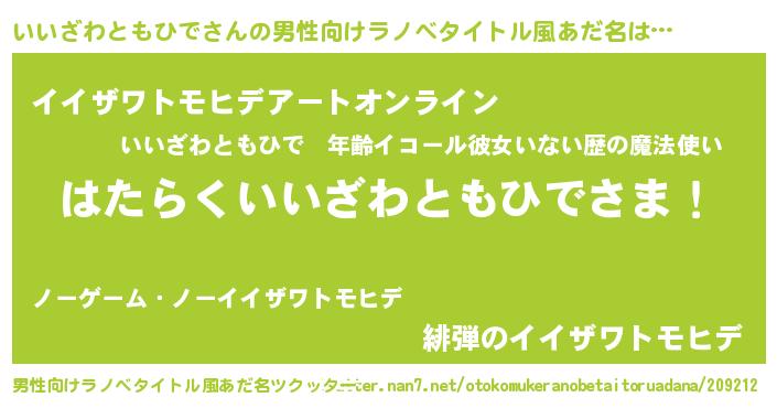 | 女子向けラノベタイトル風あだ名 | 『首の姫と首なしいいざわともひで』 |