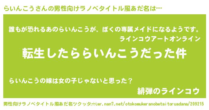| ヘコむあだ名 | 『らいんこう(小並感)』『らいにー』 |