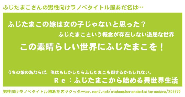 | 女子向けラノベタイトル風あだ名 | 『乙女ゲームの破滅フラグしかない悪役ふじたまこに転生してしまった…』 |