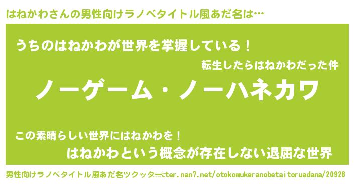 | ヘコむあだ名 | 『はねかわ(笑)』『はねを』 |