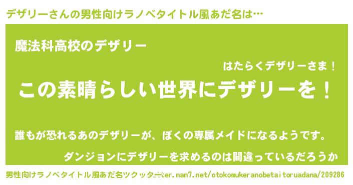 | 意味不明あだ名 | 『住所不定無職デザリー(93歳)』 |